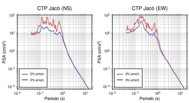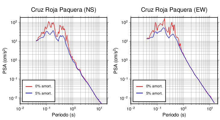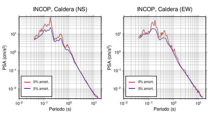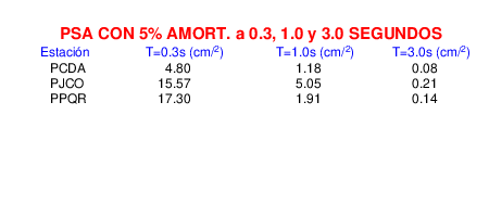 Esta tabla contiene los valores de PSA en cm/s2 calculados del espectro de respuesta con 5% de amortiguamiento a 1 segundo (se muestran los valores para aquellas estaciones que tuvieron un valor de aceleración superior a 5 cm/s2).