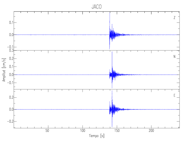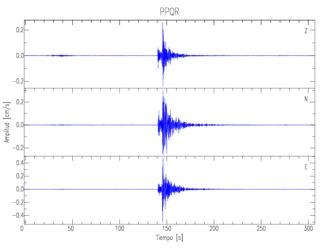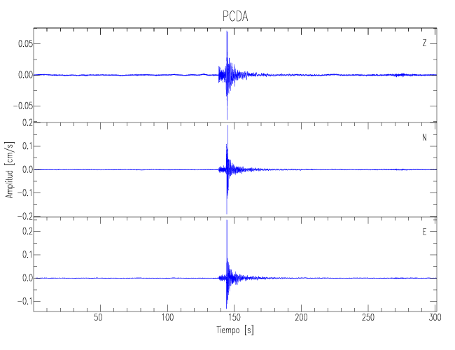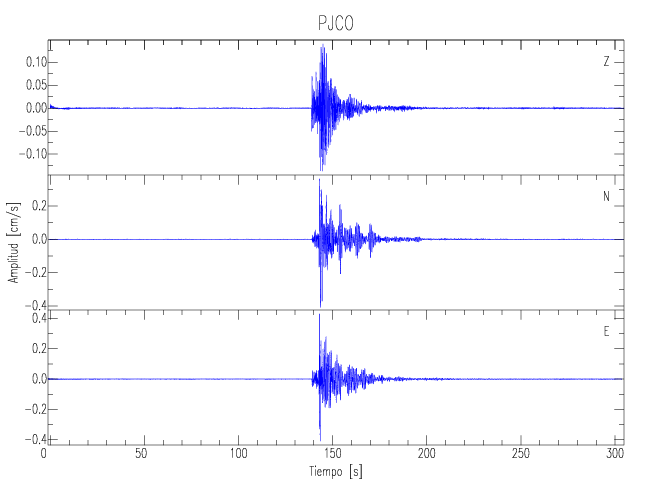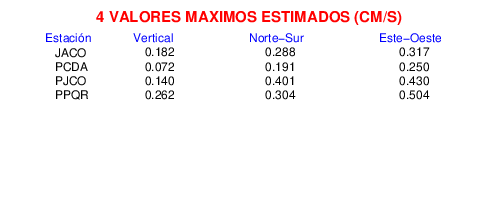 Los registros de velocidad se obtienen de la integración de los datos de aceleración. Esta tabla contiene los valores de velocidad máxima (PGV por sus siglas en inglés) para cada componente en cm/s. Las estaciones se listan en orden alfabético y corresponden a los sitios en que el nivel de aceleración fue superior a los 5 cm/s2.
