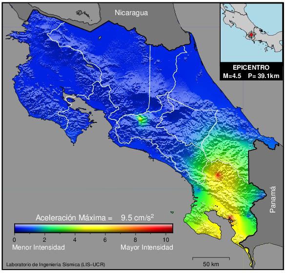 Los datos de aceleración máxima registrada se interpolan para obtener un mapa de isoaceleraciones. En el se puede ver la tendencia general de la amplificación de todo el país a partir del lugar en que el movimiento fue más intenso.
