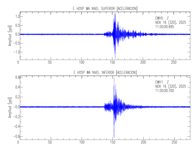En esta sección se muestran los registros de aceleración (ac), velocidad (ve) y desplazamiento (de) de los niveles superior e inferior de varios edificios que se encuentran conectados al LIS ( http://www.estructuras.lis.ucr.ac.cr )
