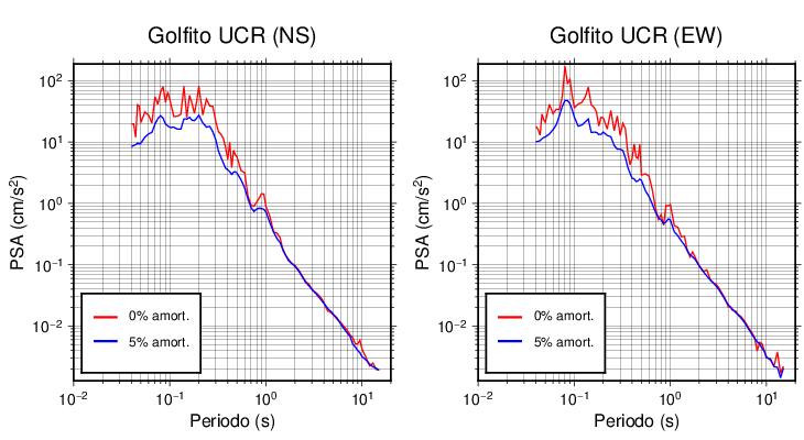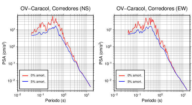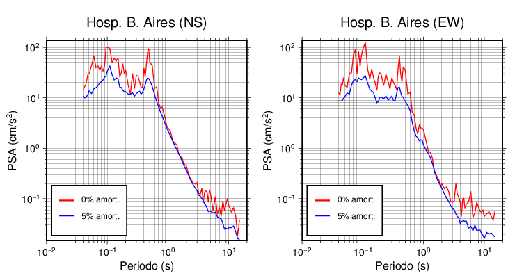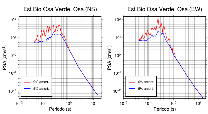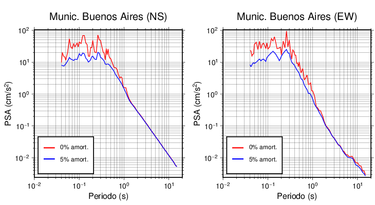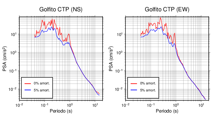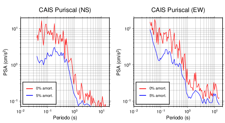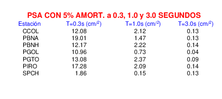 Esta tabla contiene los valores de PSA en cm/s2 calculados del espectro de respuesta con 5% de amortiguamiento a 1 segundo (se muestran los valores para aquellas estaciones que tuvieron un valor de aceleración superior a 5 cm/s2).