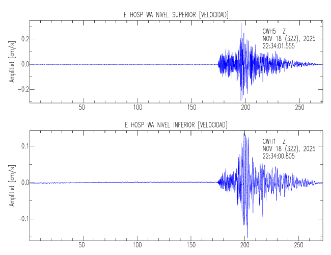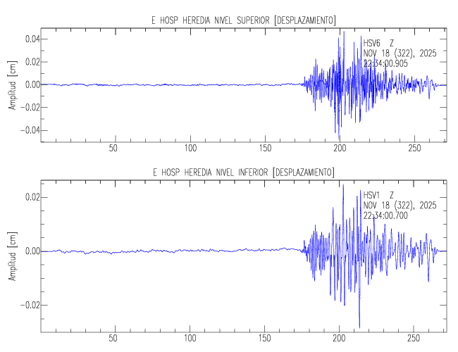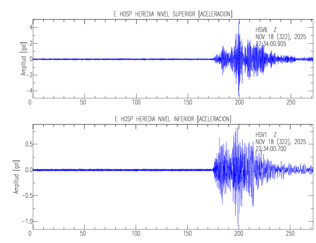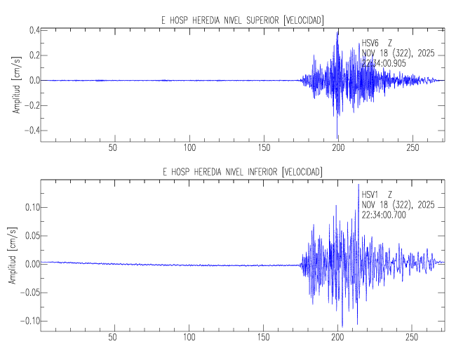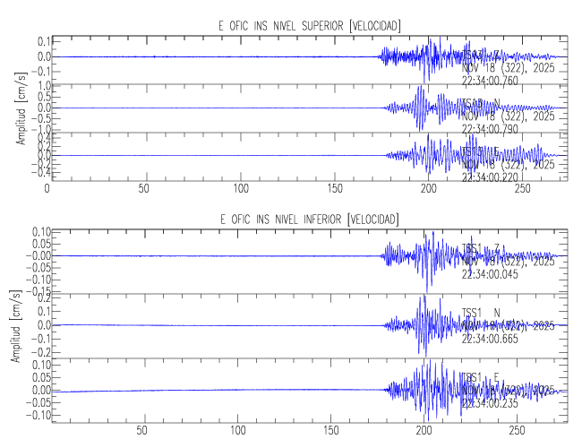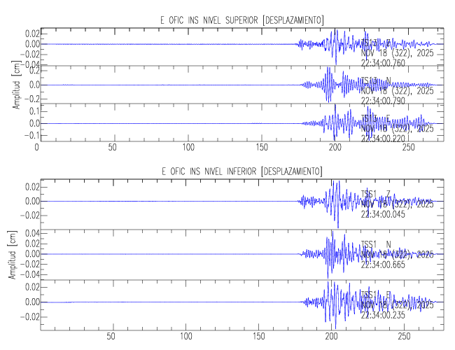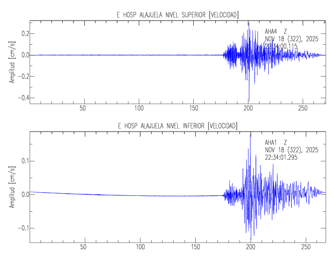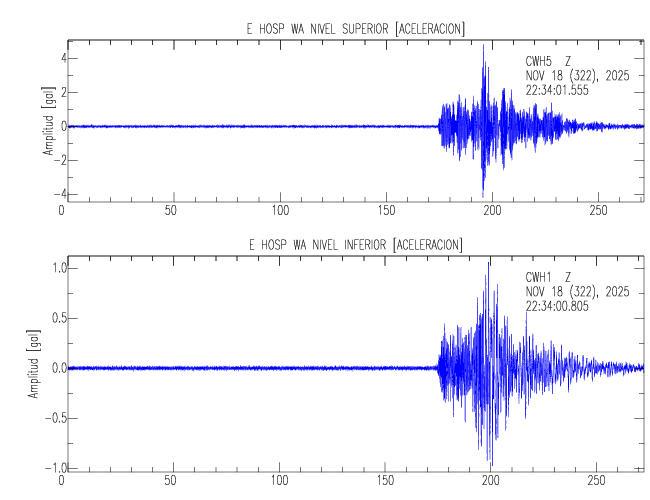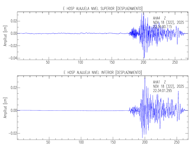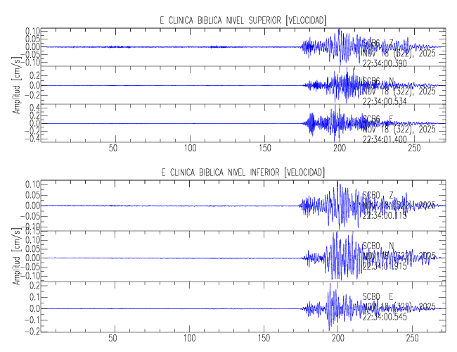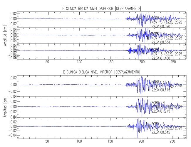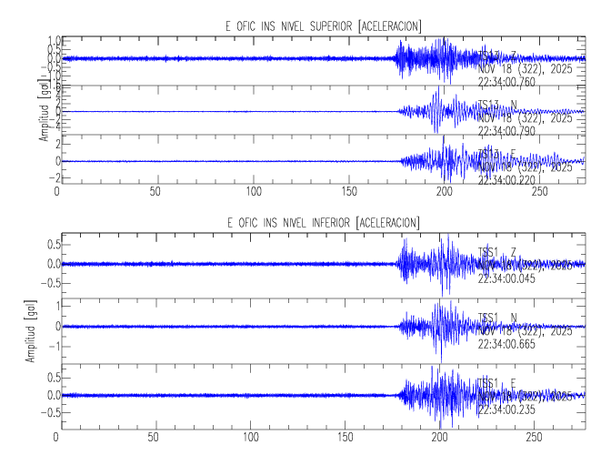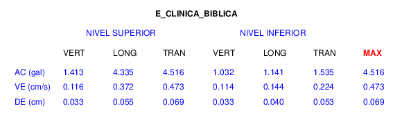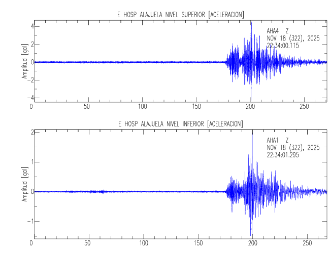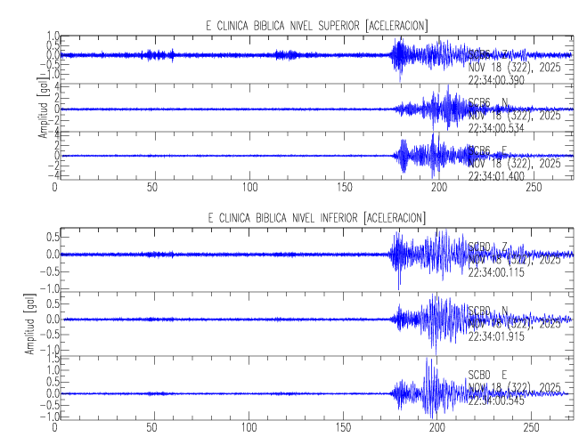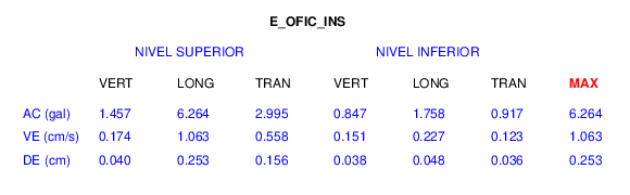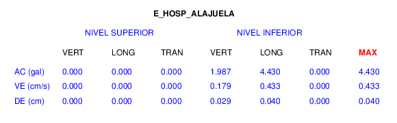 En esta sección se muestran los registros de aceleración (ac), velocidad (ve) y desplazamiento (de) de los niveles superior e inferior de varios edificios que se encuentran conectados al LIS ( http://www.estructuras.lis.ucr.ac.cr )