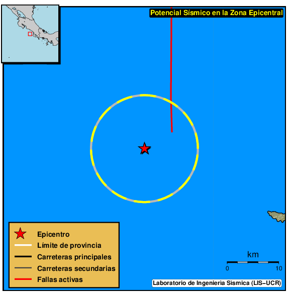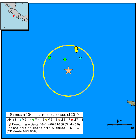A 10km a la redonda del epicentro, el LISUCR ha localizado también los siguientes 5 sismos ocurridos desde el 2010. Todos ellos con profundidades inferiores a los 40km.