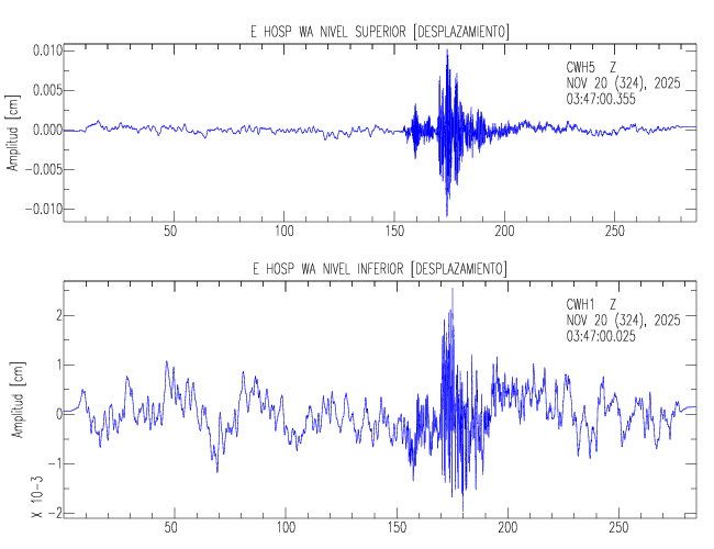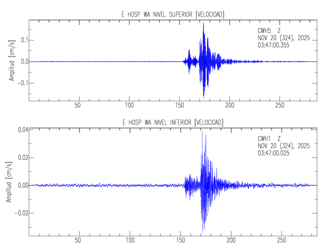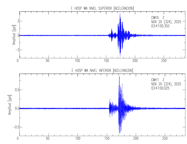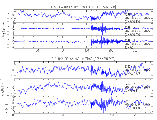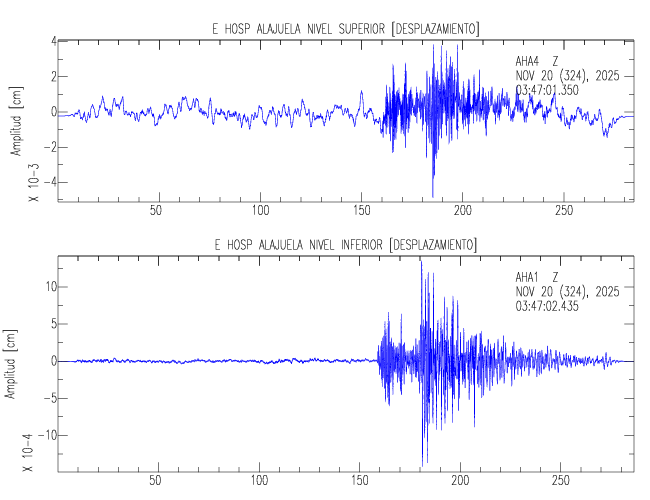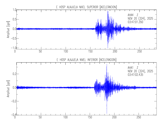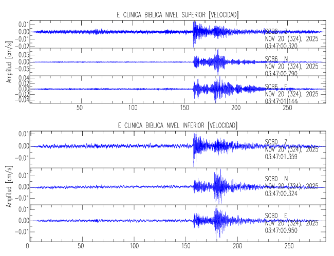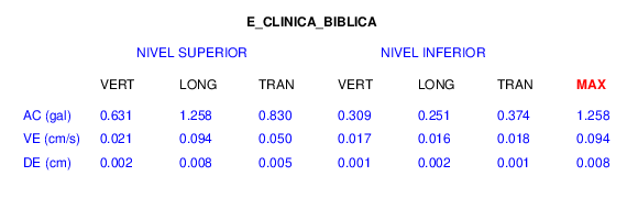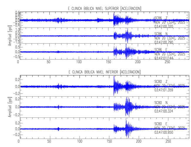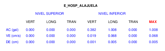 En esta sección se muestran los registros de aceleración (ac), velocidad (ve) y desplazamiento (de) de los niveles superior e inferior de varios edificios que se encuentran conectados al LIS ( http://www.estructuras.lis.ucr.ac.cr )