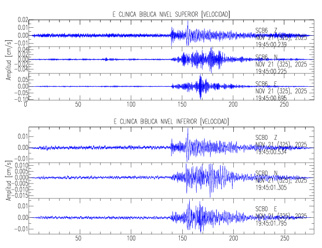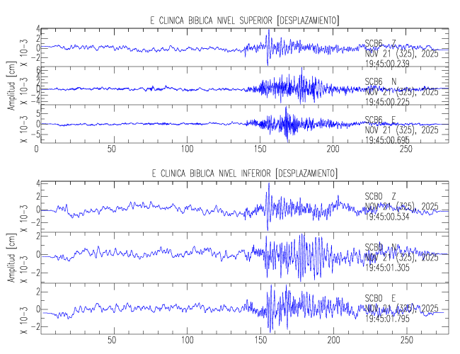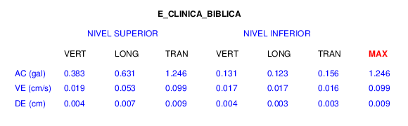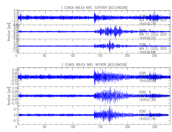 En esta sección se muestran los registros de aceleración (ac), velocidad (ve) y desplazamiento (de) de los niveles superior e inferior de varios edificios que se encuentran conectados al LIS ( http://www.estructuras.lis.ucr.ac.cr )