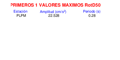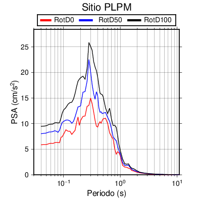 RotD50 representa un valor medio de la respuesta por lo cual se puede comparar con valores de otras medidas empleadas en modelos de atenuación como la Media Geométrica de las componentes ortogonales (GM). RotD0 y RotD100 son los valores extremos (mínimo y máximo), los cuales nos pueden servir para determinar la dispersión de la posible respuesta en cada sitio.