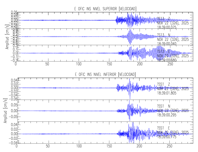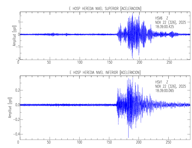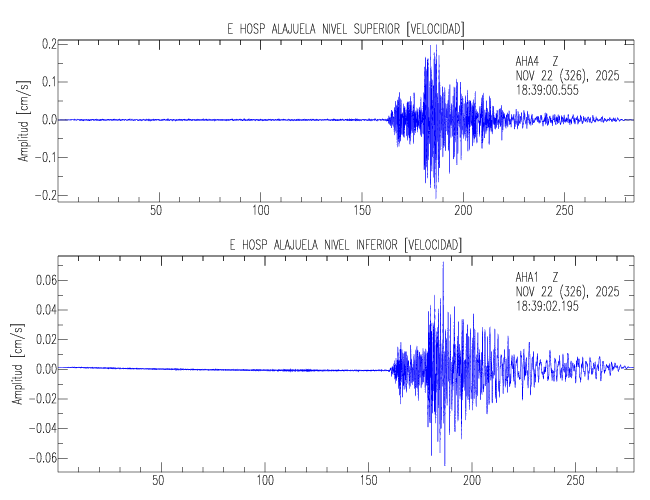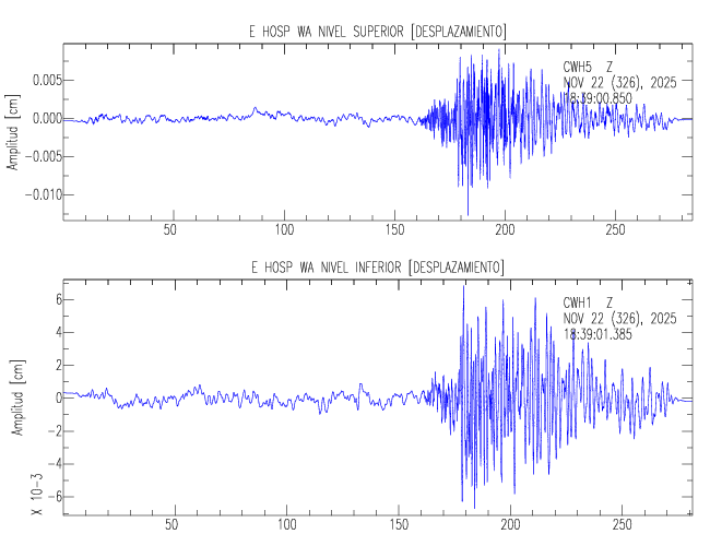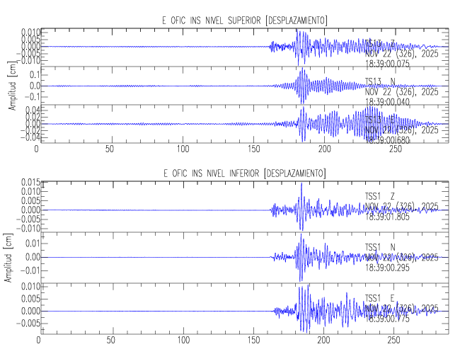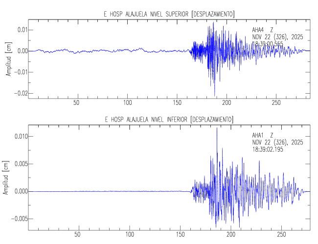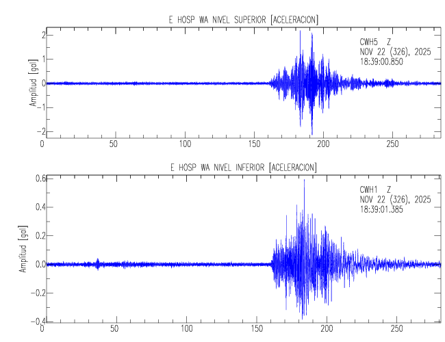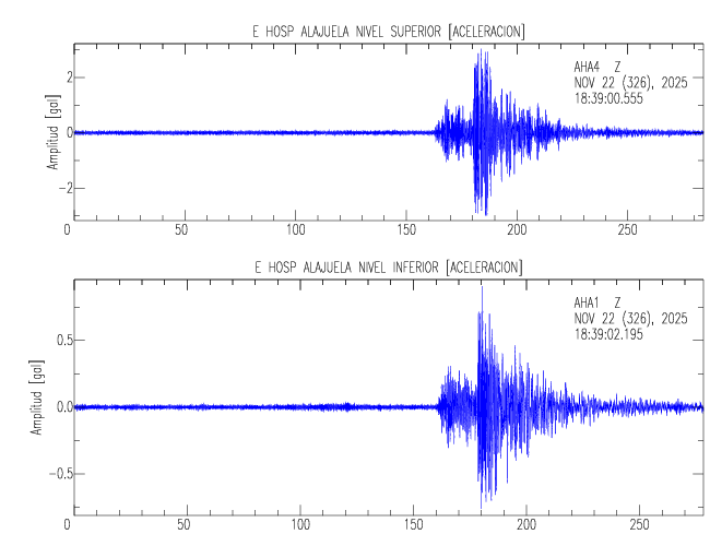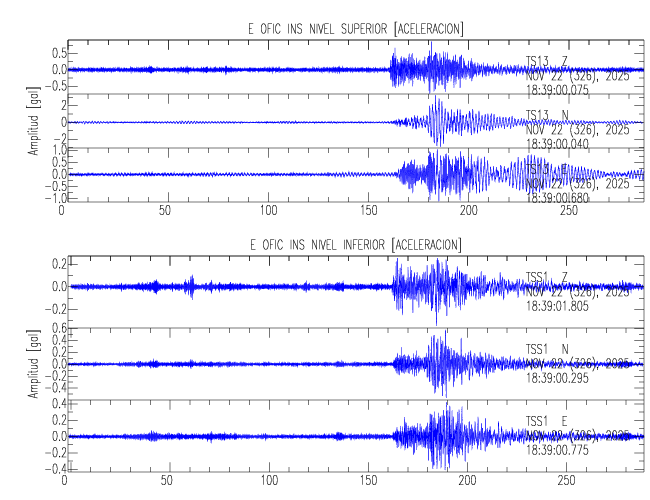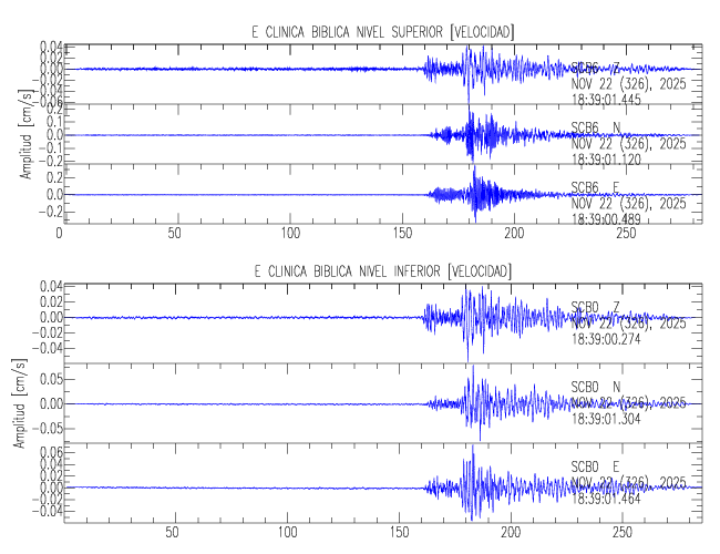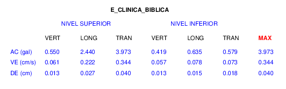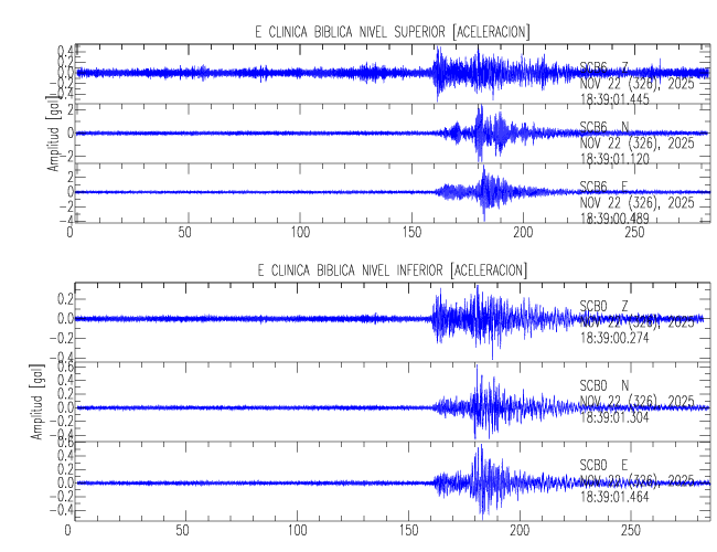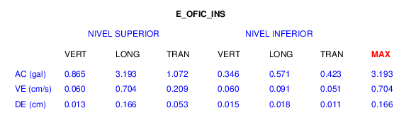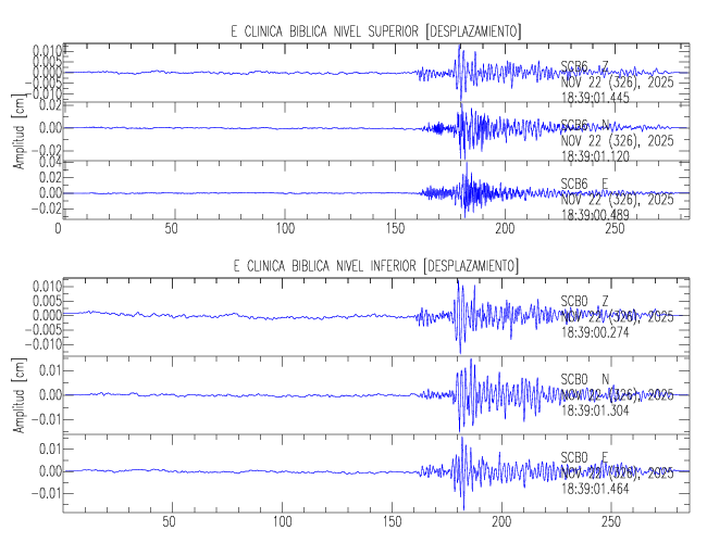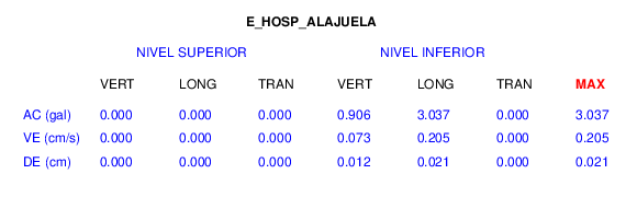 En esta sección se muestran los registros de aceleración (ac), velocidad (ve) y desplazamiento (de) de los niveles superior e inferior de varios edificios que se encuentran conectados al LIS ( http://www.estructuras.lis.ucr.ac.cr )