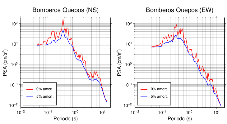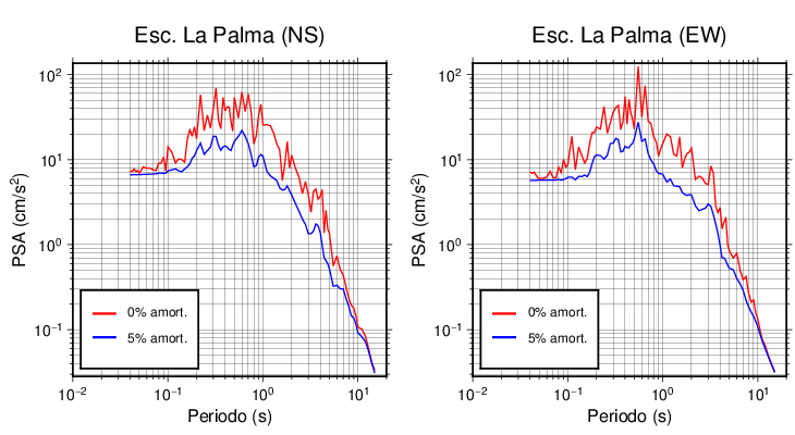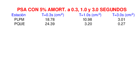 Esta tabla contiene los valores de PSA en cm/s2 calculados del espectro de respuesta con 5% de amortiguamiento a 1 segundo (se muestran los valores para aquellas estaciones que tuvieron un valor de aceleración superior a 5 cm/s2).