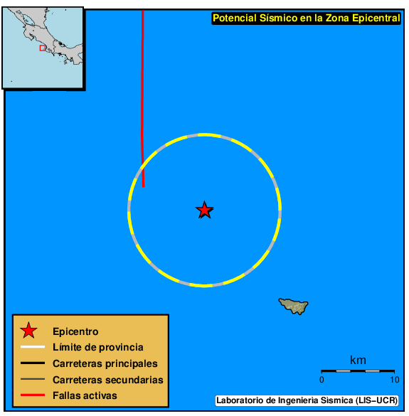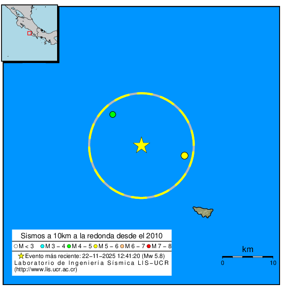 A 10km a la redonda del epicentro, el LISUCR ha localizado también los siguientes 2 sismos ocurridos desde el 2010. Todos ellos con profundidades inferiores a los 40km.