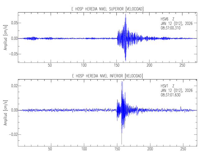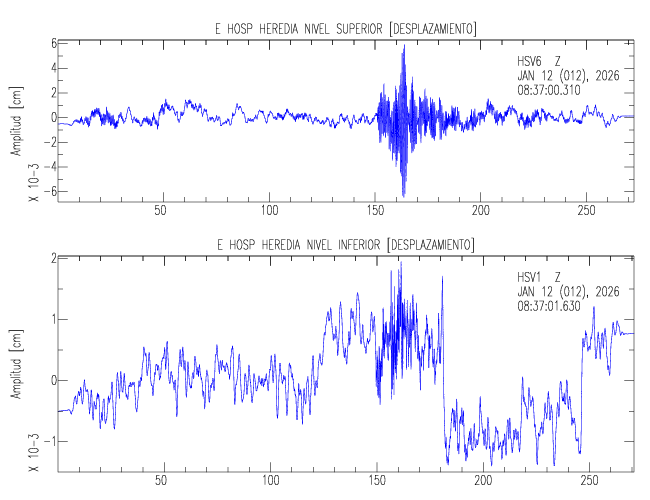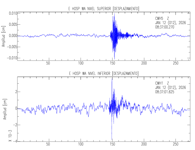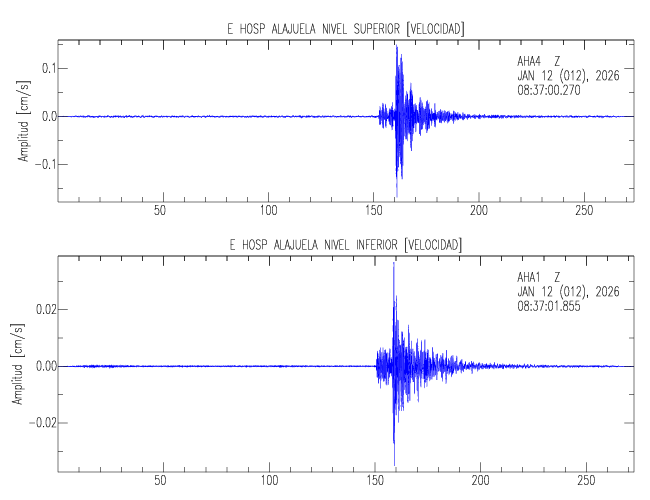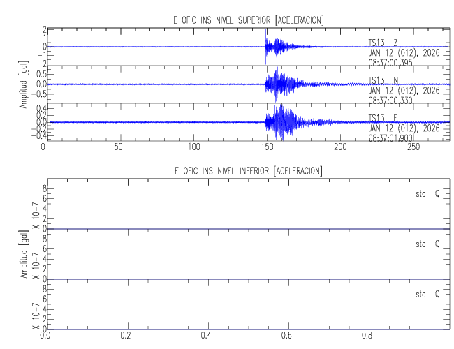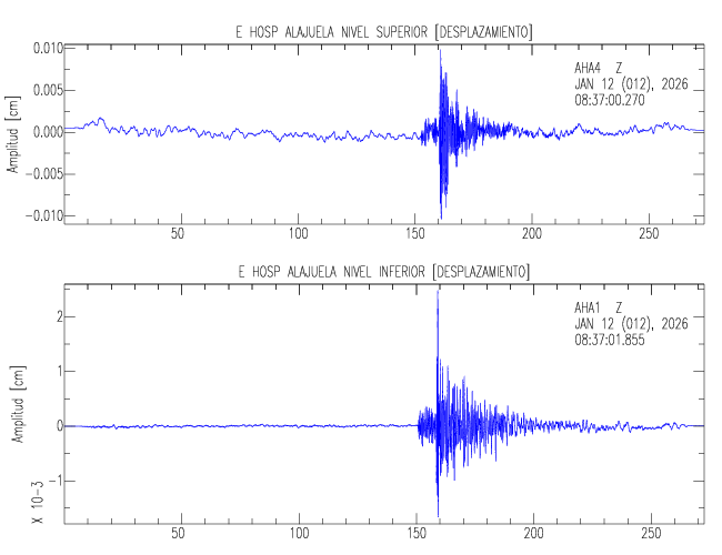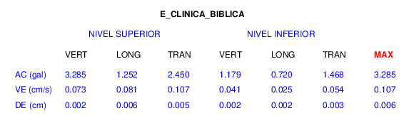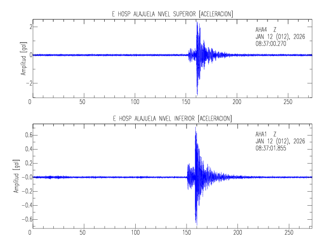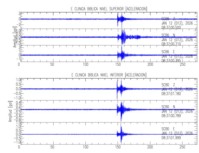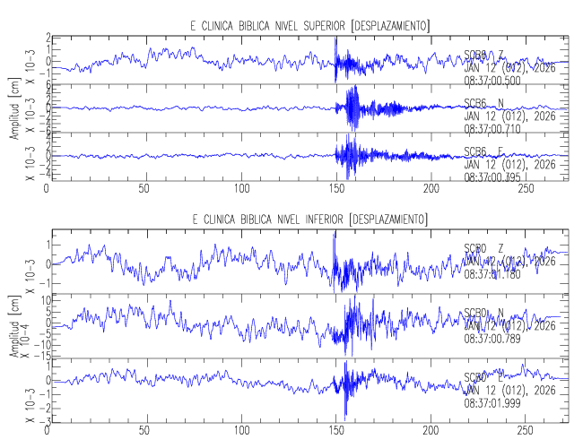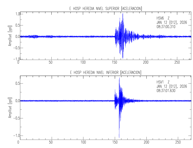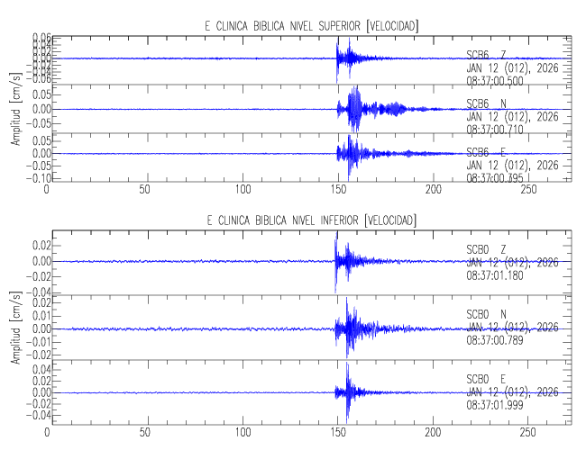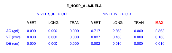 En esta sección se muestran los registros de aceleración (ac), velocidad (ve) y desplazamiento (de) de los niveles superior e inferior de varios edificios que se encuentran conectados al LIS ( http://www.estructuras.lis.ucr.ac.cr )