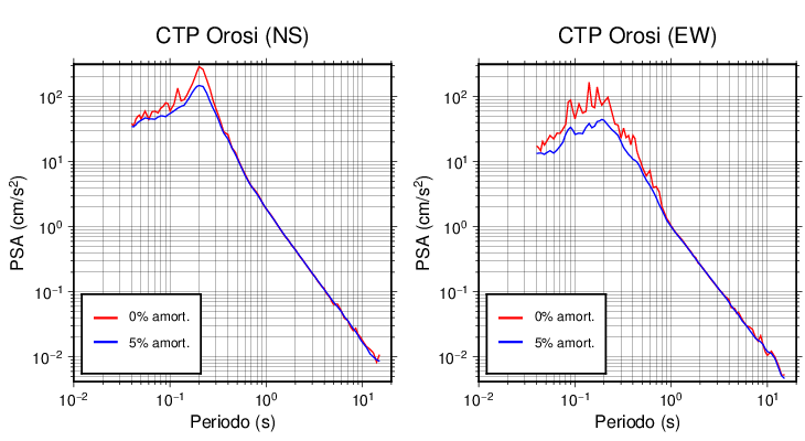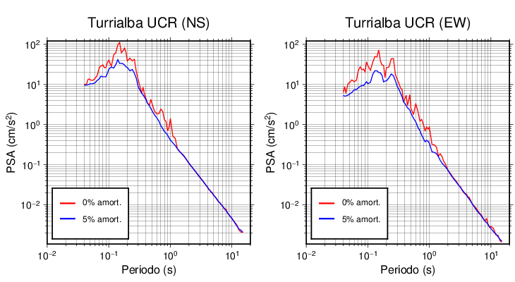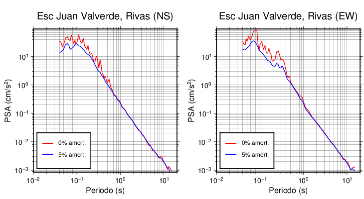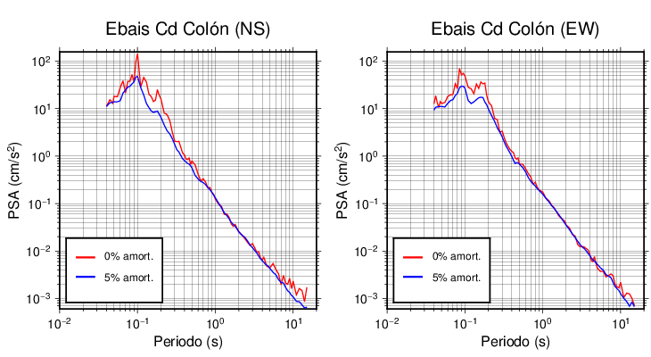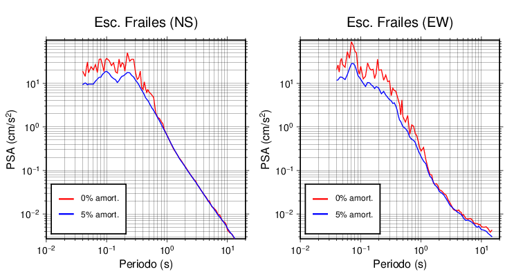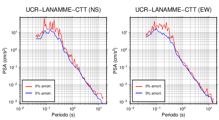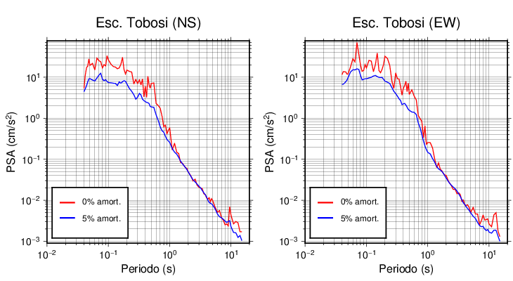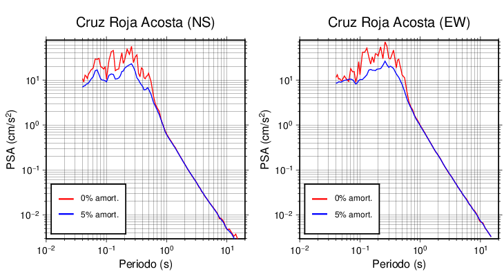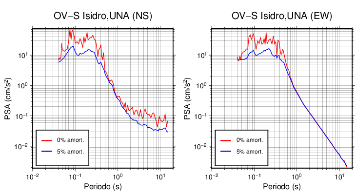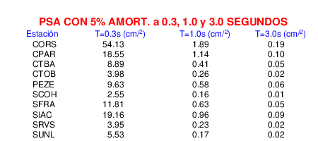 Esta tabla contiene los valores de PSA en cm/s2 calculados del espectro de respuesta con 5% de amortiguamiento a 1 segundo (se muestran los valores para aquellas estaciones que tuvieron un valor de aceleración superior a 5 cm/s2).
