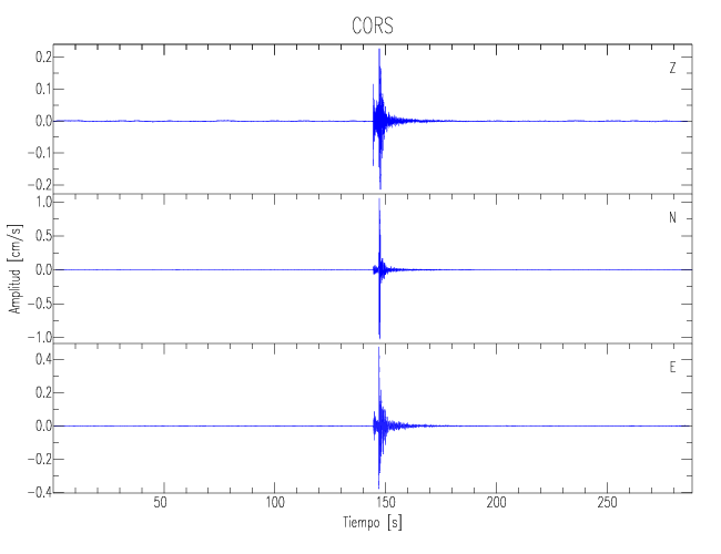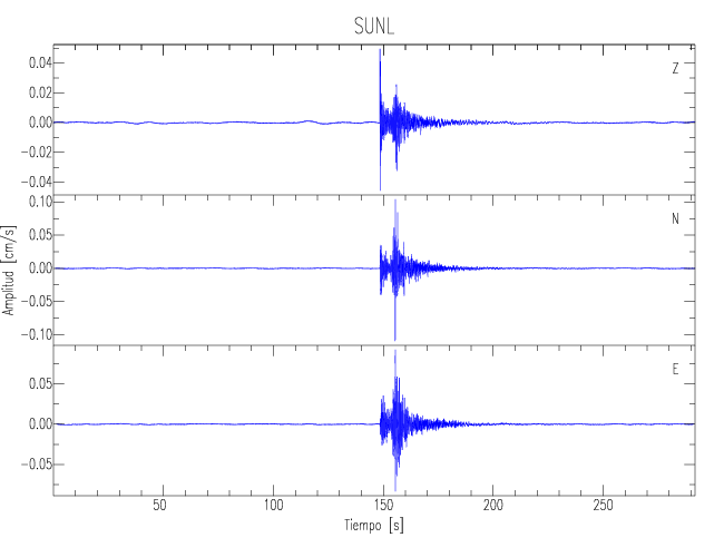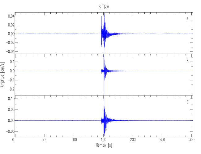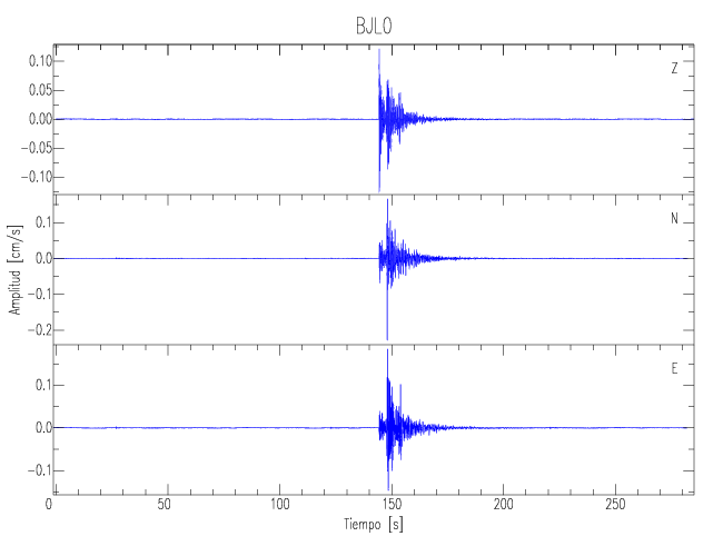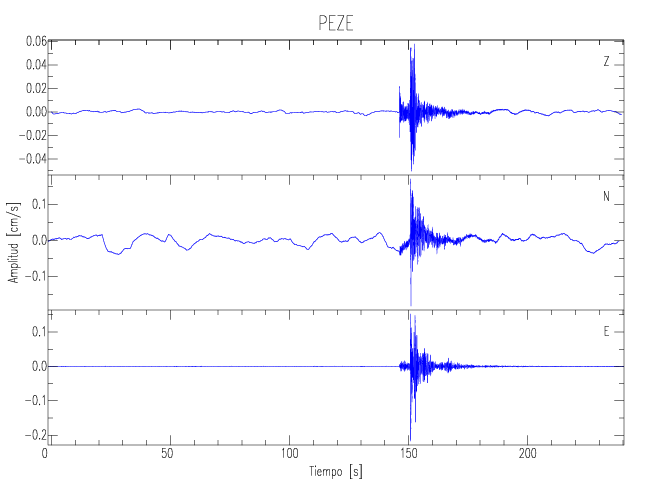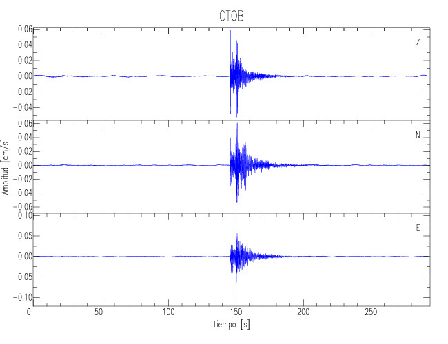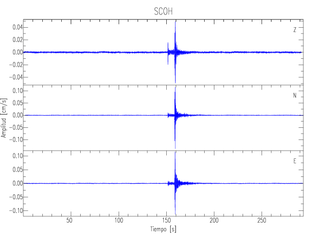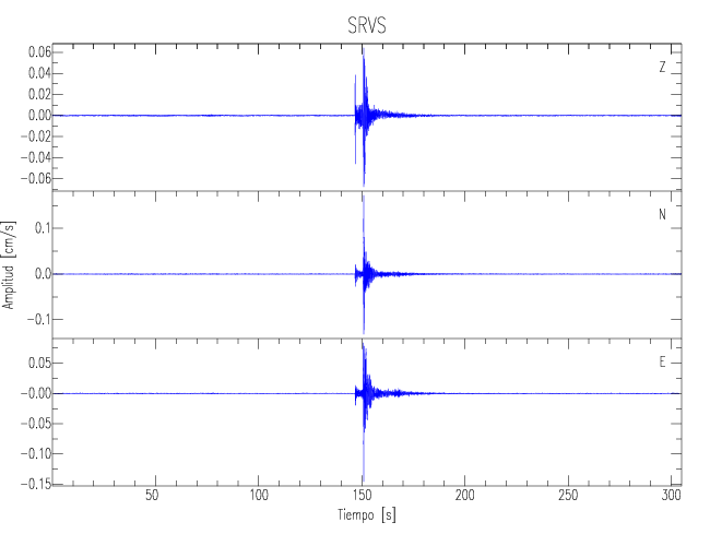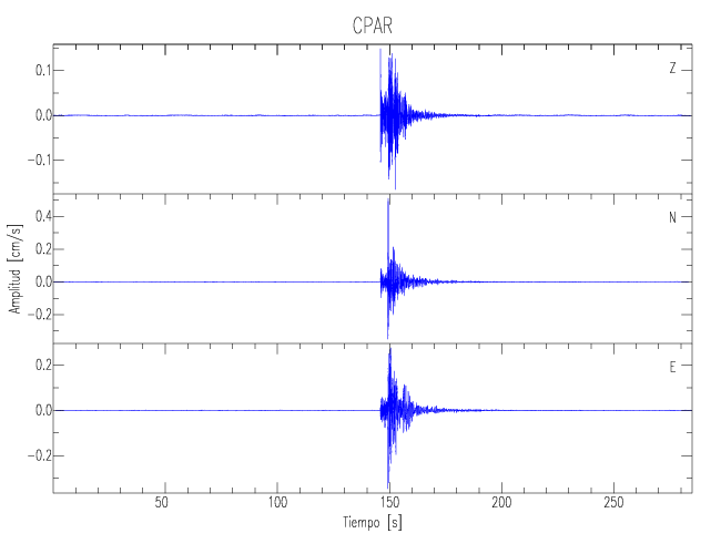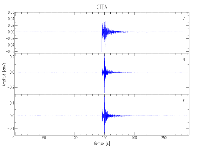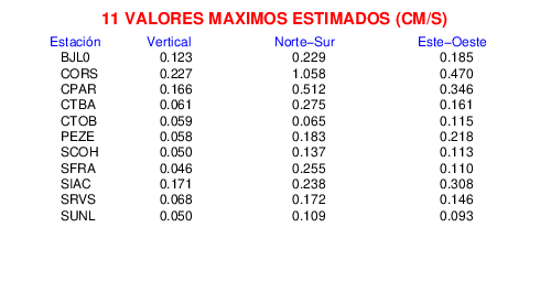 Los registros de velocidad se obtienen de la integración de los datos de aceleración. Esta tabla contiene los valores de velocidad máxima (PGV por sus siglas en inglés) para cada componente en cm/s. Las estaciones se listan en orden alfabético y corresponden a los sitios en que el nivel de aceleración fue superior a los 5 cm/s2.