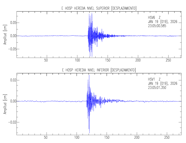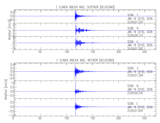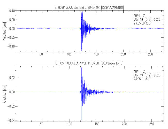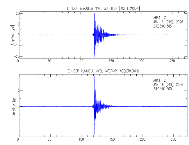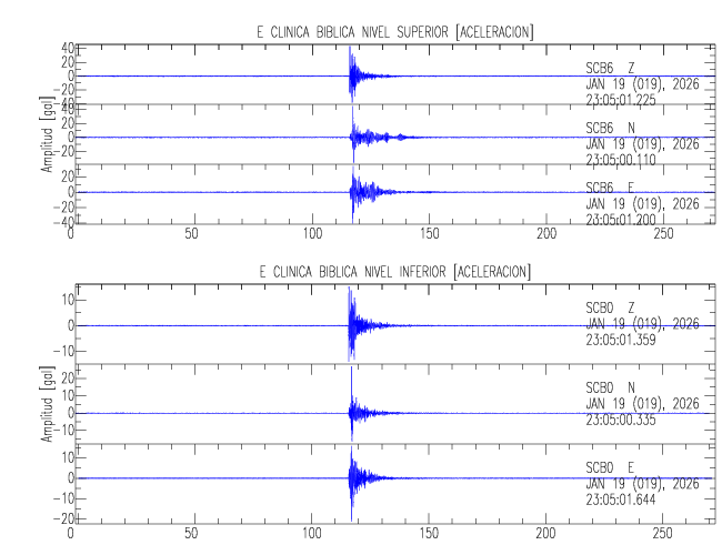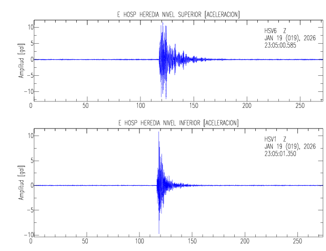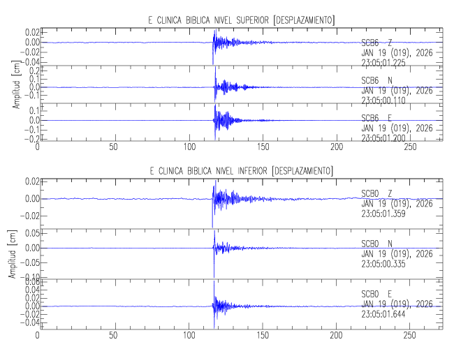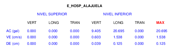 En esta sección se muestran los registros de aceleración (ac), velocidad (ve) y desplazamiento (de) de los niveles superior e inferior de varios edificios que se encuentran conectados al LIS ( http://www.estructuras.lis.ucr.ac.cr )