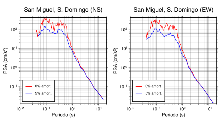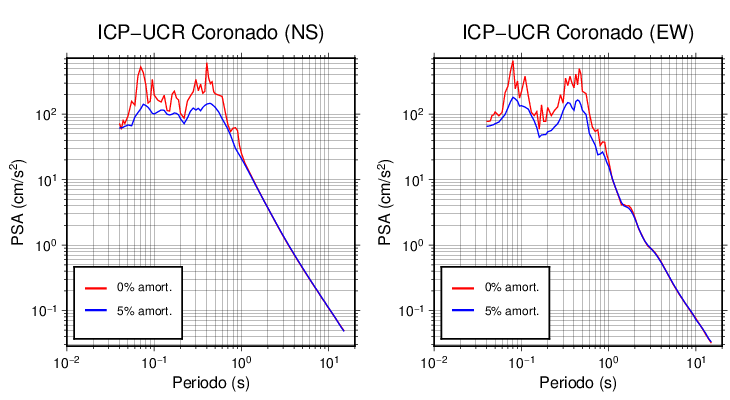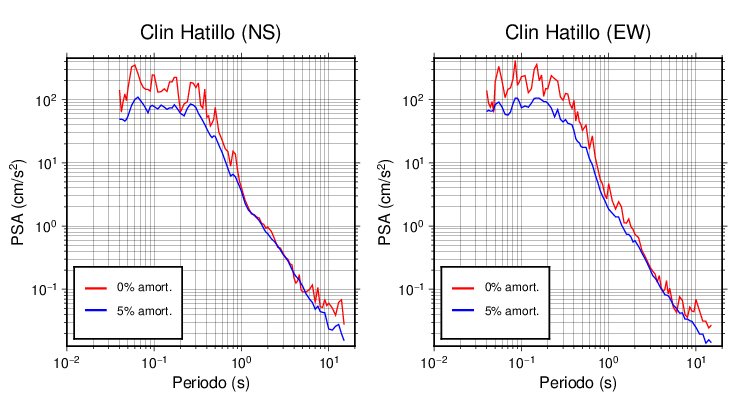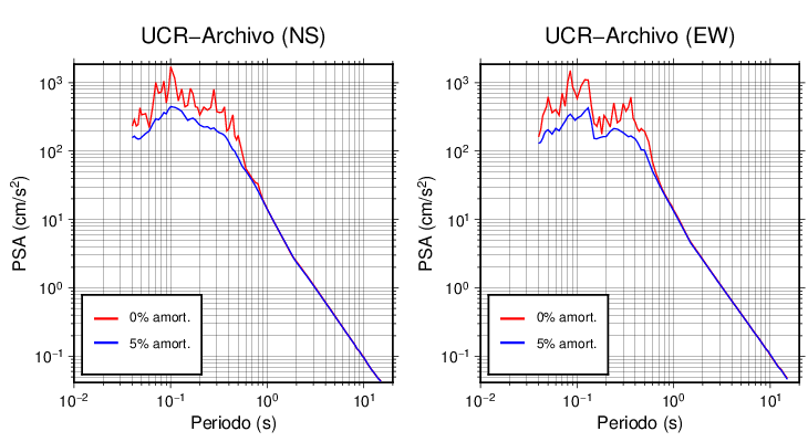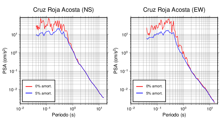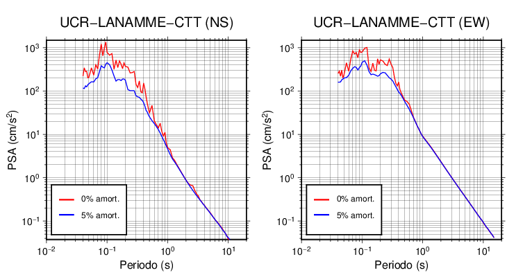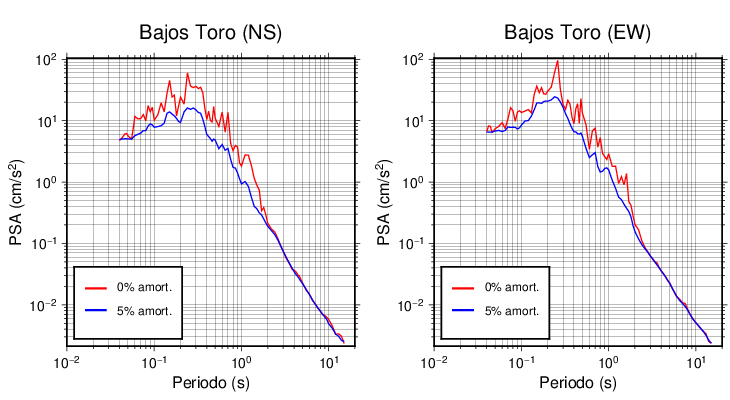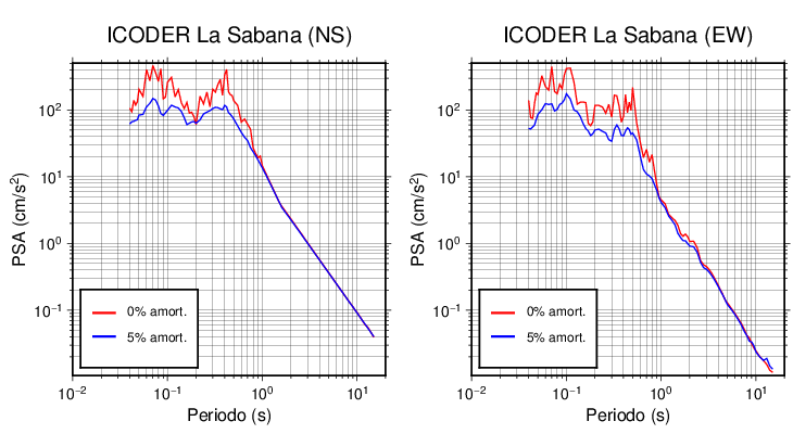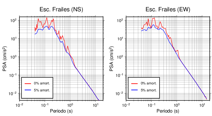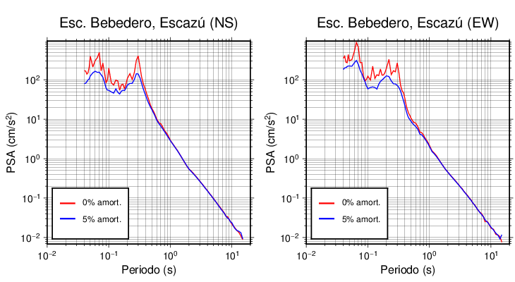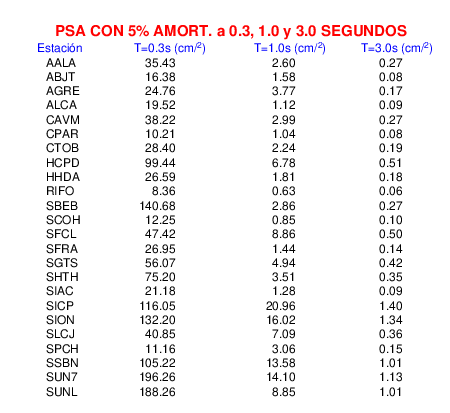 Esta tabla contiene los valores de PSA en cm/s2 calculados del espectro de respuesta con 5% de amortiguamiento a 1 segundo (se muestran los valores para aquellas estaciones que tuvieron un valor de aceleración superior a 5 cm/s2).
