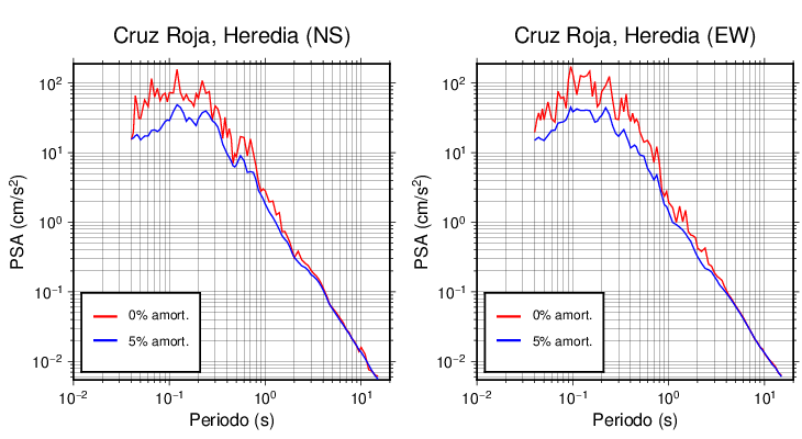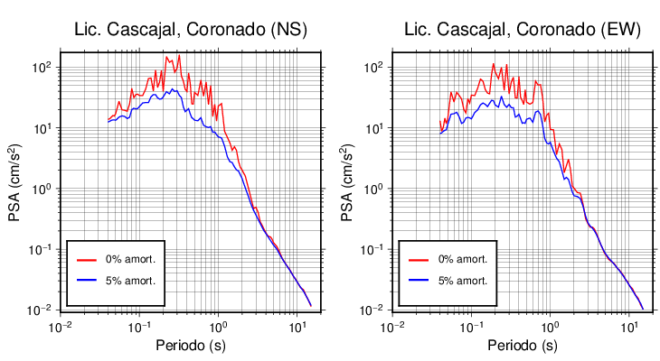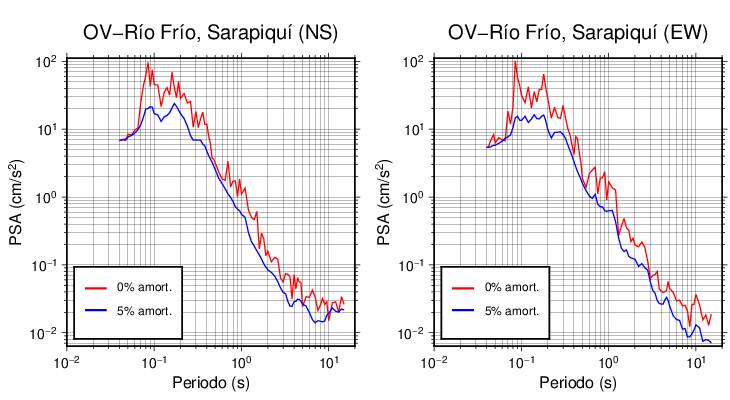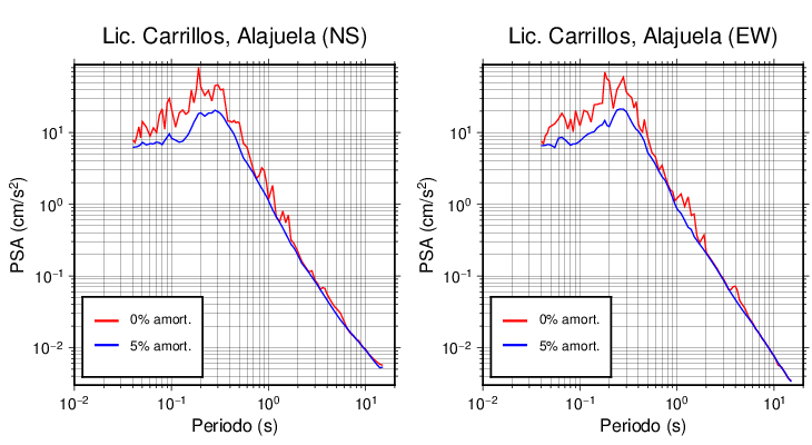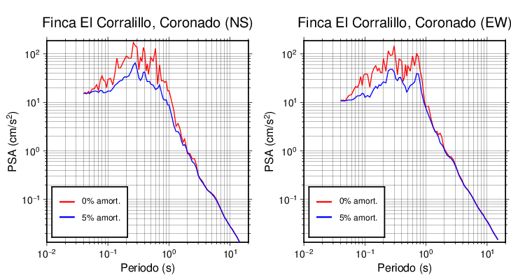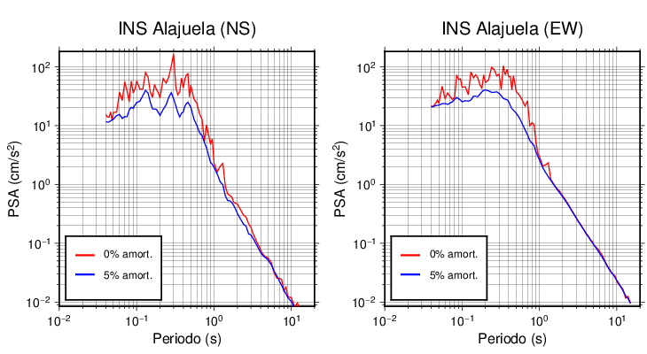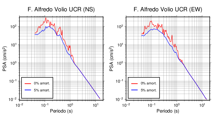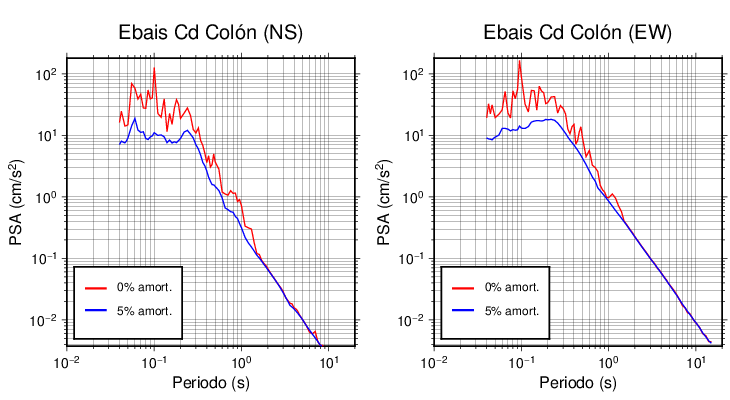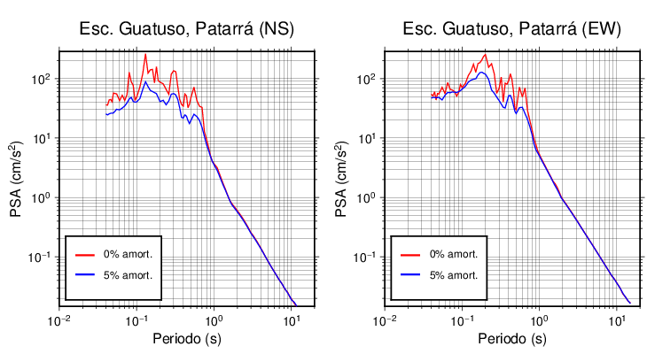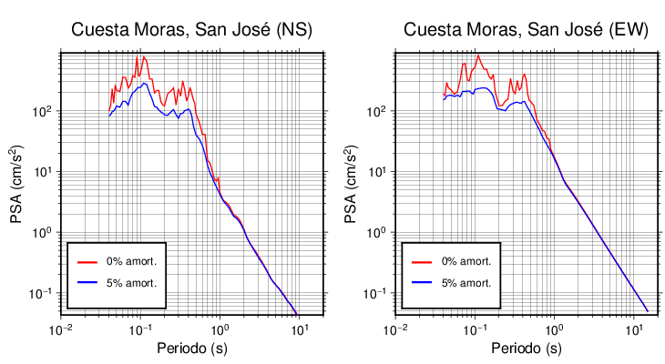 Esta tabla contiene los valores de PSA en cm/s2 calculados del espectro de respuesta con 5% de amortiguamiento a 1 segundo (se muestran los valores para aquellas estaciones que tuvieron un valor de aceleración superior a 5 cm/s2).
