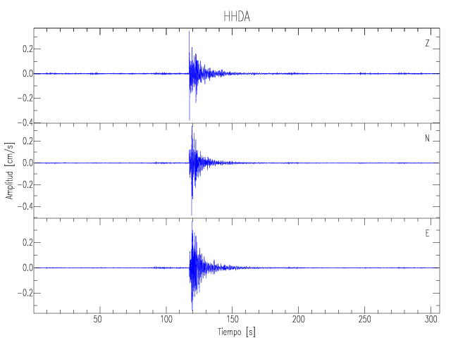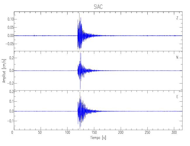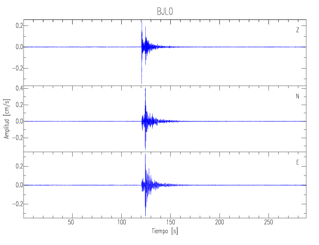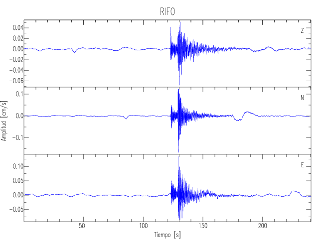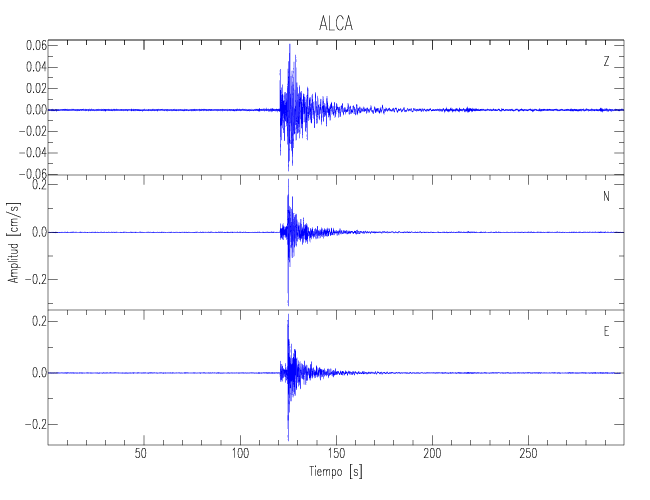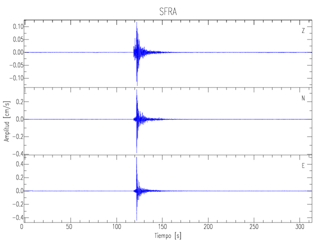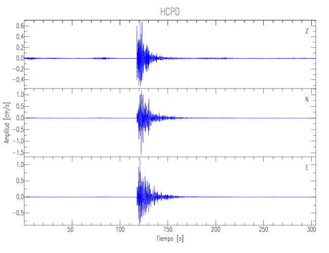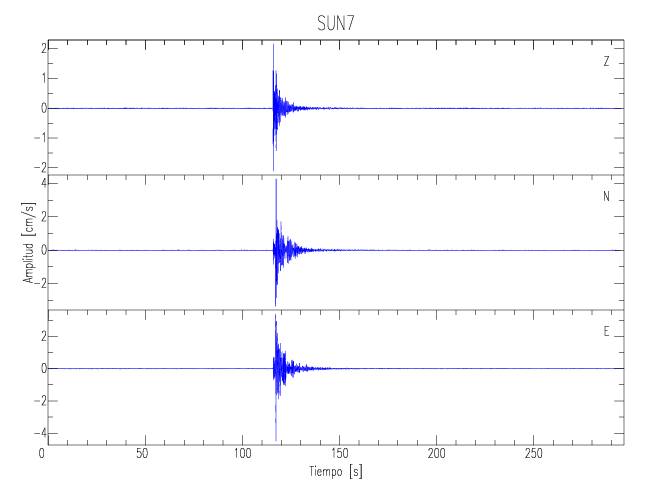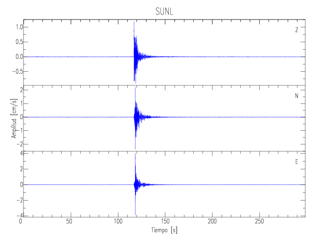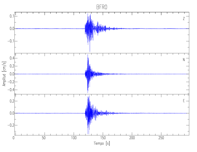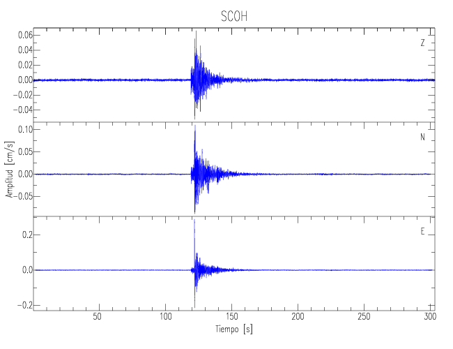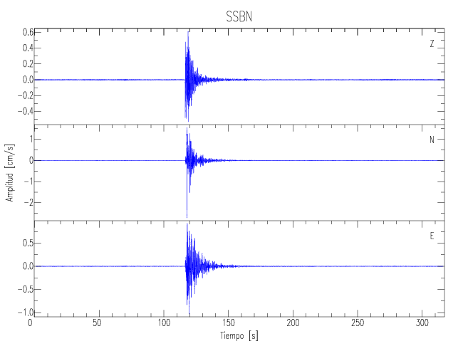 Los registros de velocidad se obtienen de la integración de los datos de aceleración. Esta tabla contiene los valores de velocidad máxima (PGV por sus siglas en inglés) para cada componente en cm/s. Las estaciones se listan en orden alfabético y corresponden a los sitios en que el nivel de aceleración fue superior a los 5 cm/s2.